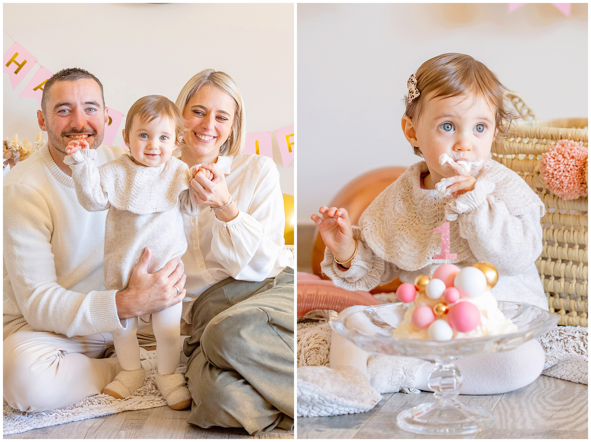 It can also be a beautiful opportunity to create something more playful and personal. Some families choose to include a cake smash, others prefer capturing their baby opening gifts, or even celebrating with close family members during a small birthday gathering.